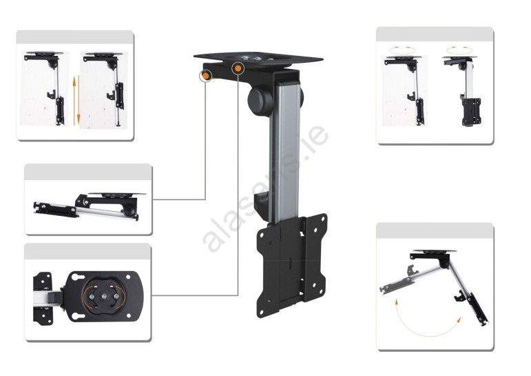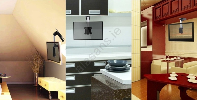 • The tilting TV mount is designed for ceiling installation, including sloped ceilings in loft spaces.