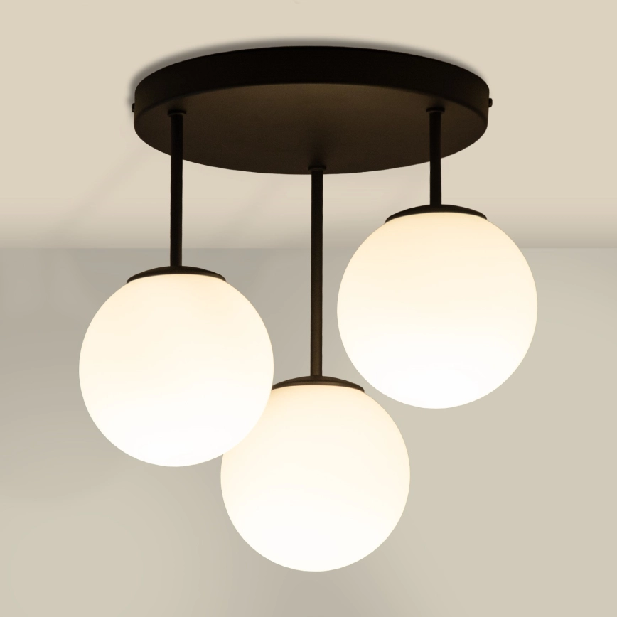 MOONLIGHT flush-mount ceiling light, 3xE27/15W/230V, black characterizes nice and functional design.  A bulb with E27 cap is suitable for the light. Here, you can buy other bulbs at advantageous prices. You will have an interesting addtiion to your home.