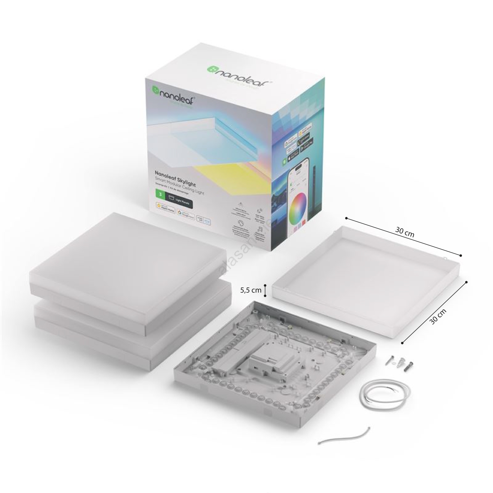 Nanoleaf - 3-piece set: RGBW dimmable SKYLIGHT ceiling lights — 1× LED 18W/230V + 2× LED 16W/230V, 2700–6500K, Wi‑Fi