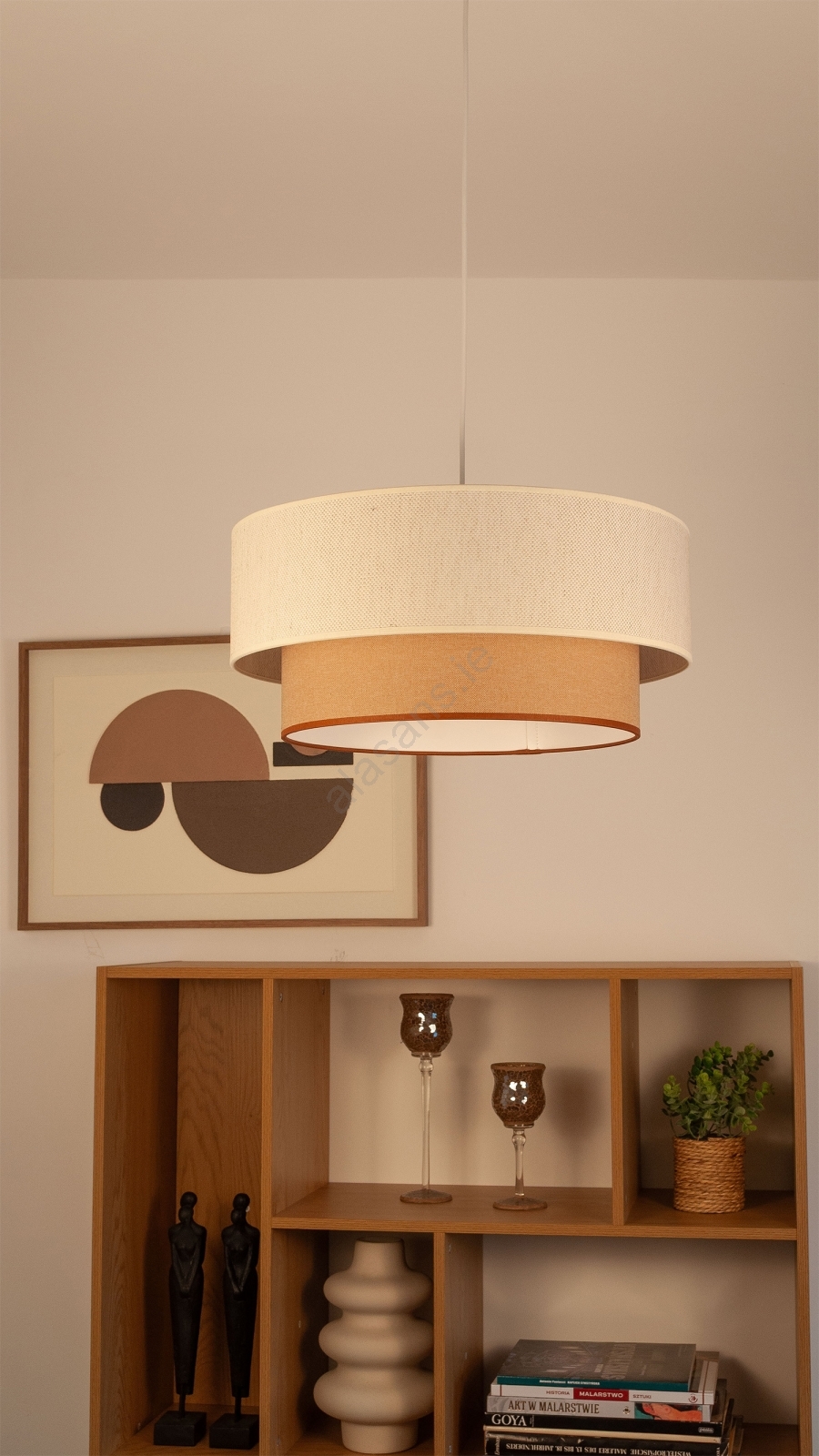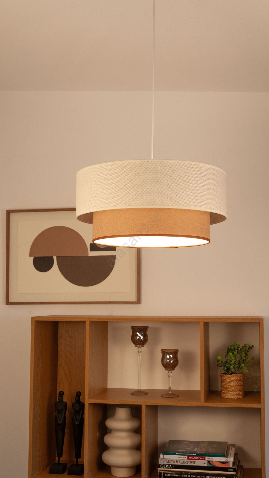 Cable pendant light NATIA 1xE27/60W/230V Ø 45 cm white/brown characterizes nice and functional design.  A bulb with E27 cap is suitable for the light. Here, you can buy other bulbs at advantageous prices. You will have an interesting addtiion to your home.