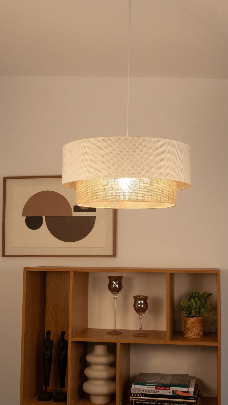 Cable-hung pendant light NATIA 1xE27/60W/230V Ø 45 cm white/brown characterizes nice and functional design.  A bulb with E27 cap is suitable for the light. Here, you can buy other bulbs at advantageous prices. You will have an interesting addtiion to your home.