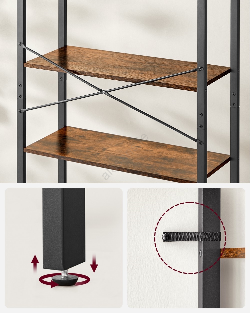 • With 6 shelves (with a load capacity of up to 90 kg) you can store books, figurines, decorative items and other display pieces on it.