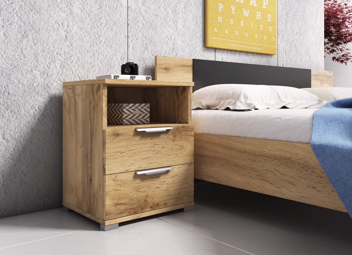 • Features two drawers: a lower drawer with a handle and an upper drawer without one for a minimalist, streamlined look.
