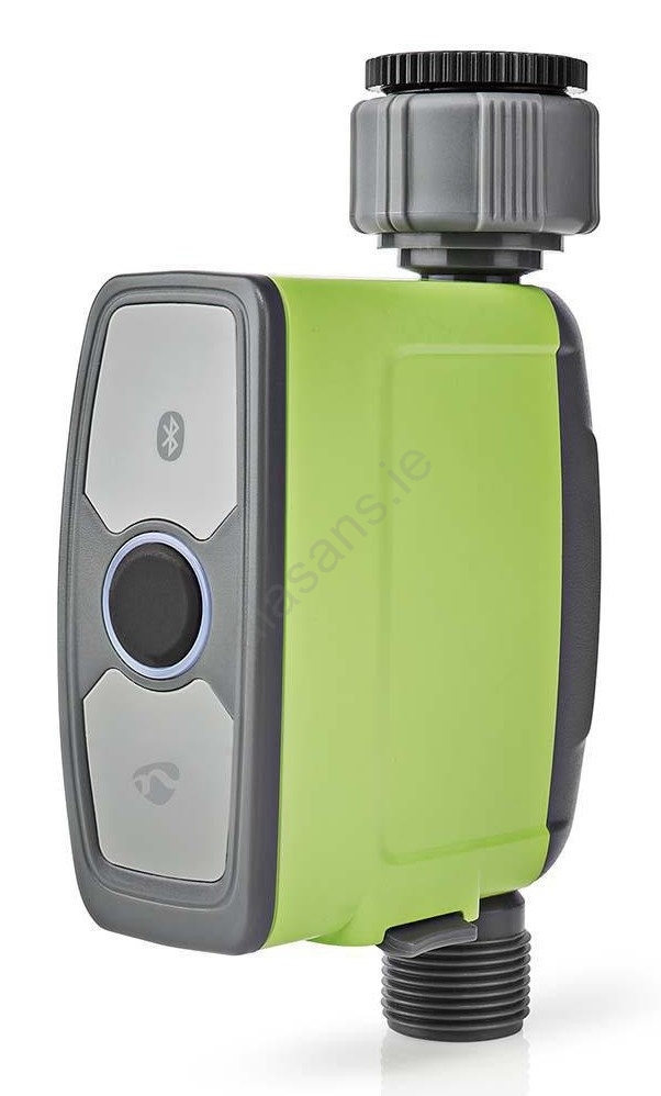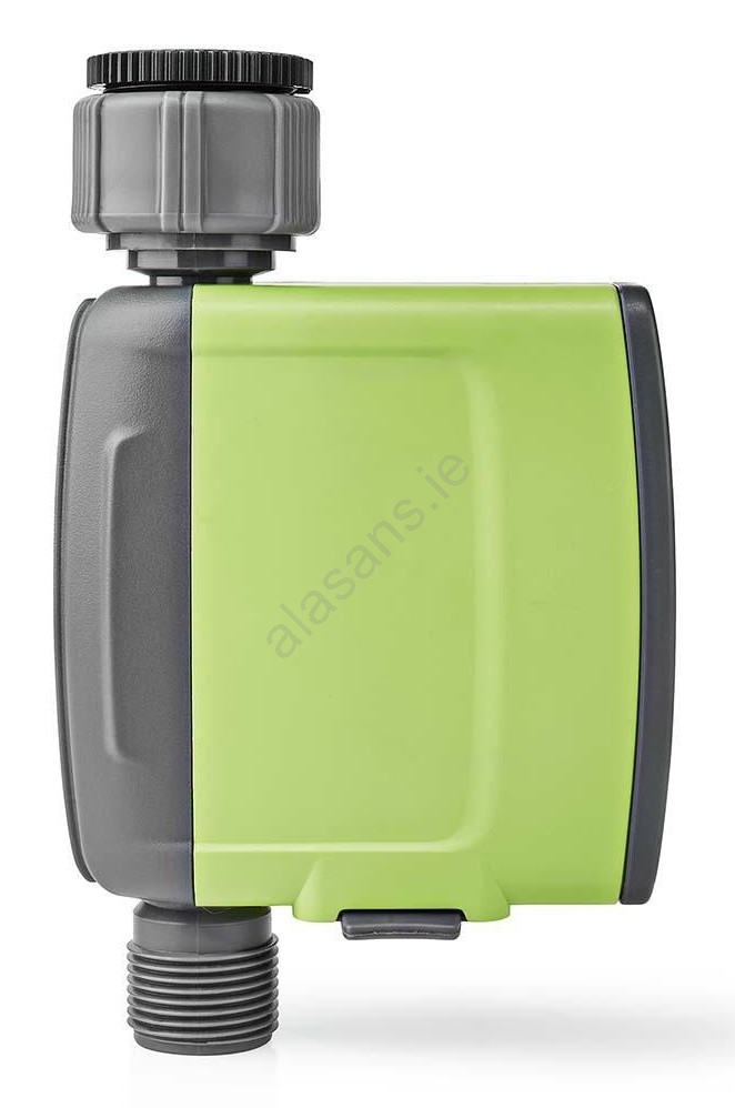 • Simply mount it between the water tap and the sprinkler or garden hose (no tools needed).