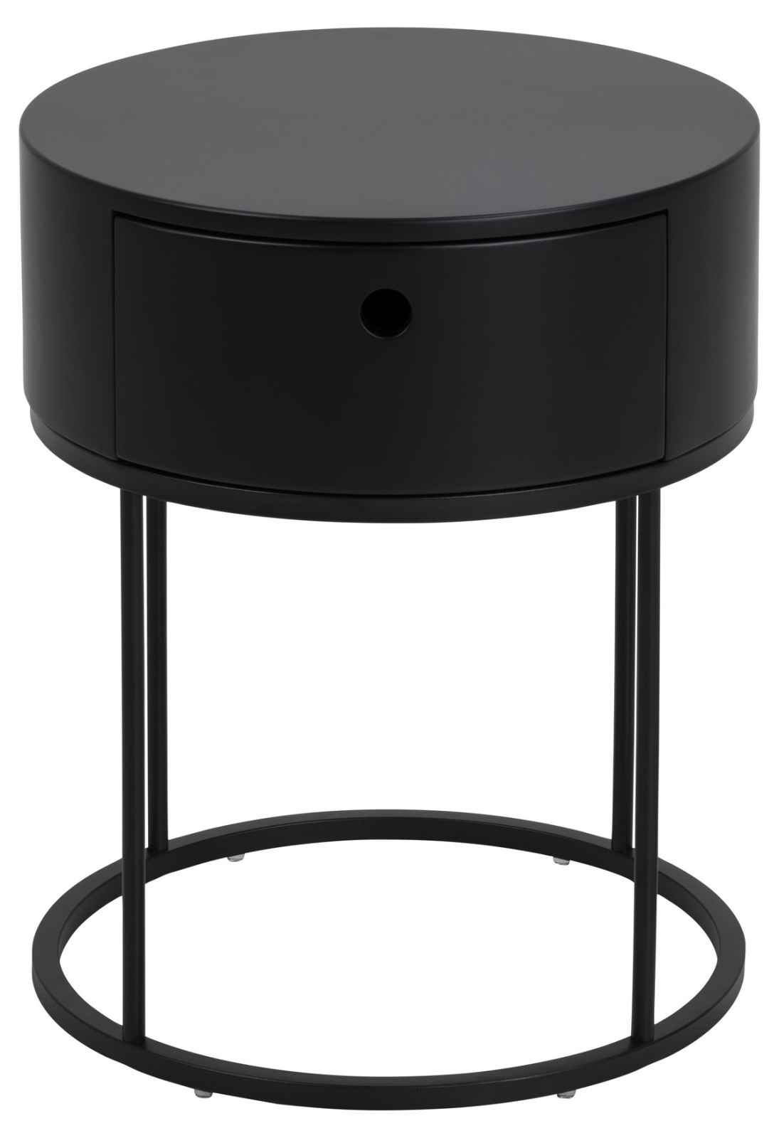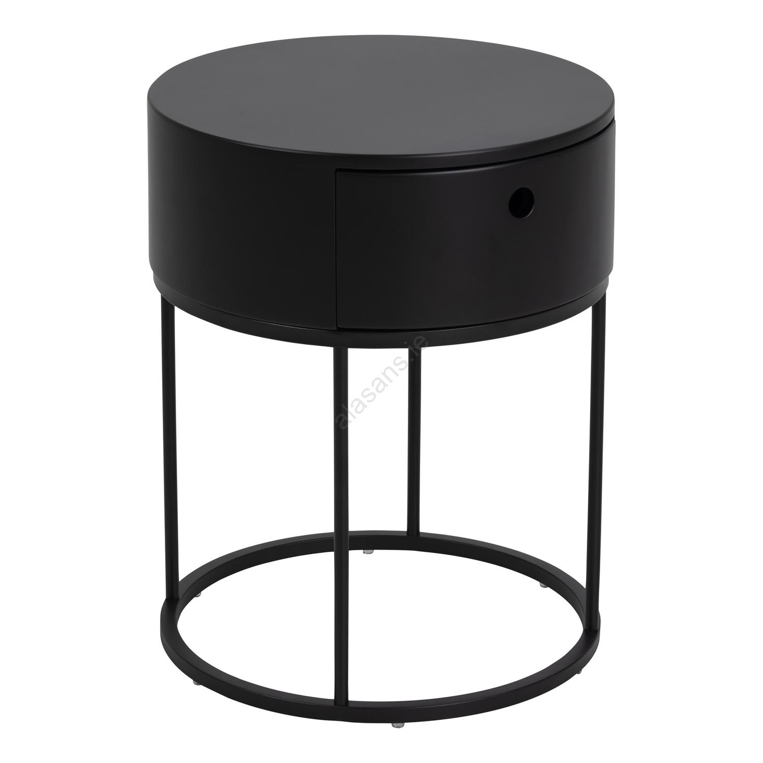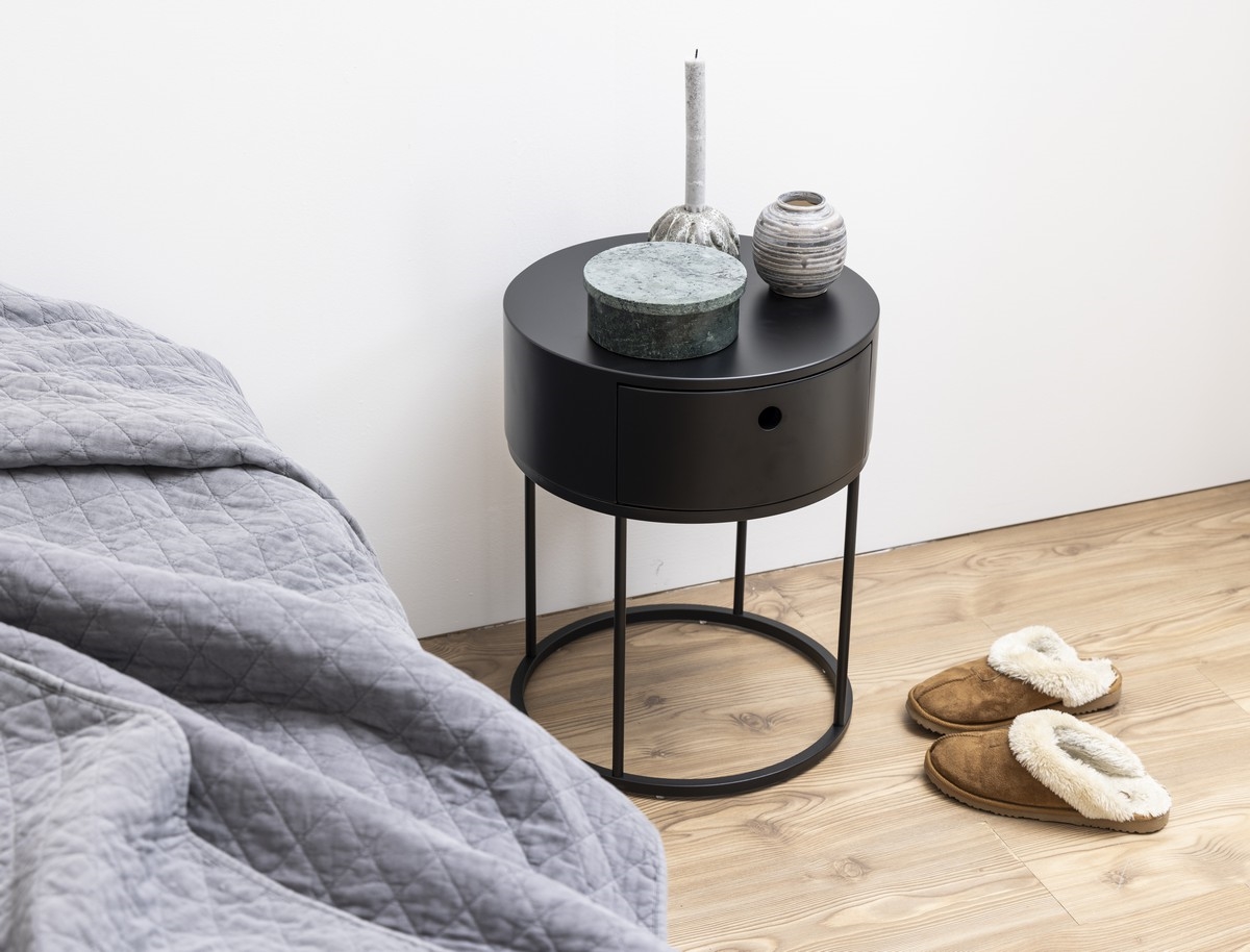 • Top, frame and drawer in black PU-lacquered MDF, base in matte black, coarse powder-coated steel.
