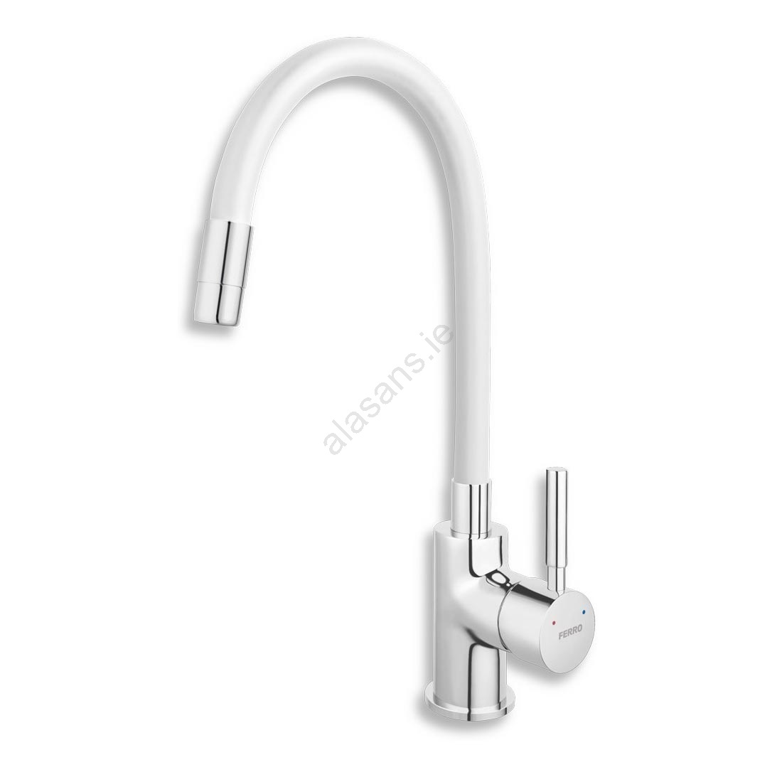 FERRO - Sink tap with flexible arm shiny chrome/white