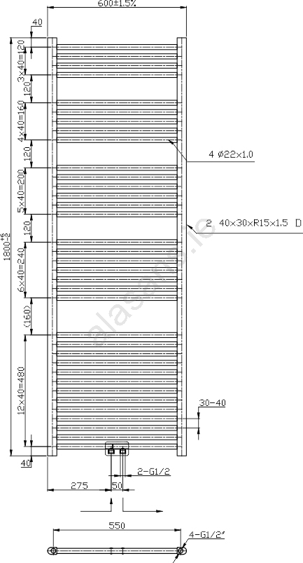 Novaservis - Bathroom heated towel rail, 630 W / 230 V, 180 x 60 cm, polished chrome, straight
