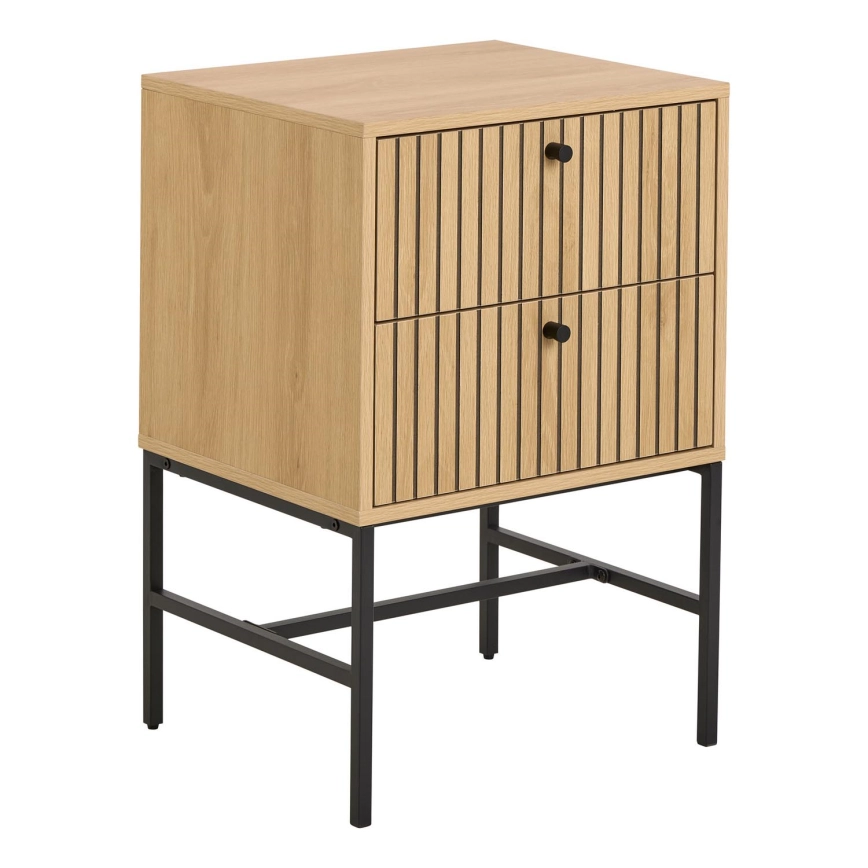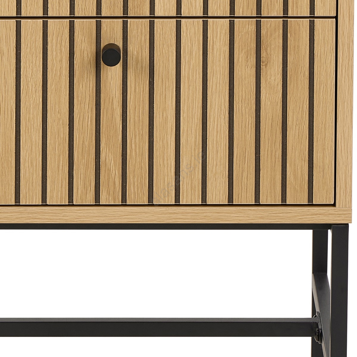 • This oak-effect nightstand with a slatted front adds style and practicality to your home.
