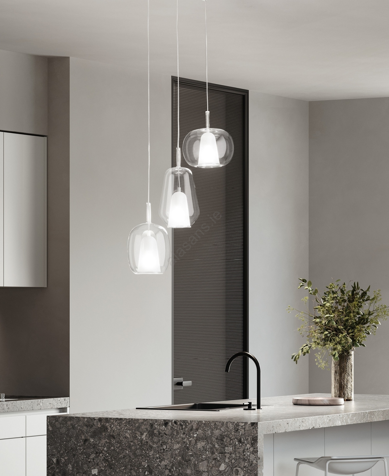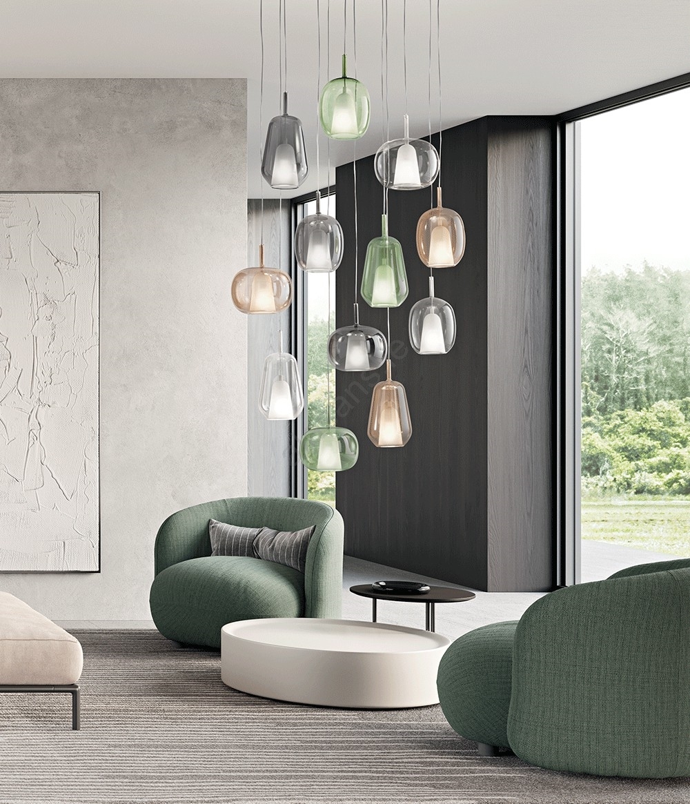 • Ondaluce - THELMA Cable-Suspended Pendant 3xE27/15W/230V, Smoky Grey