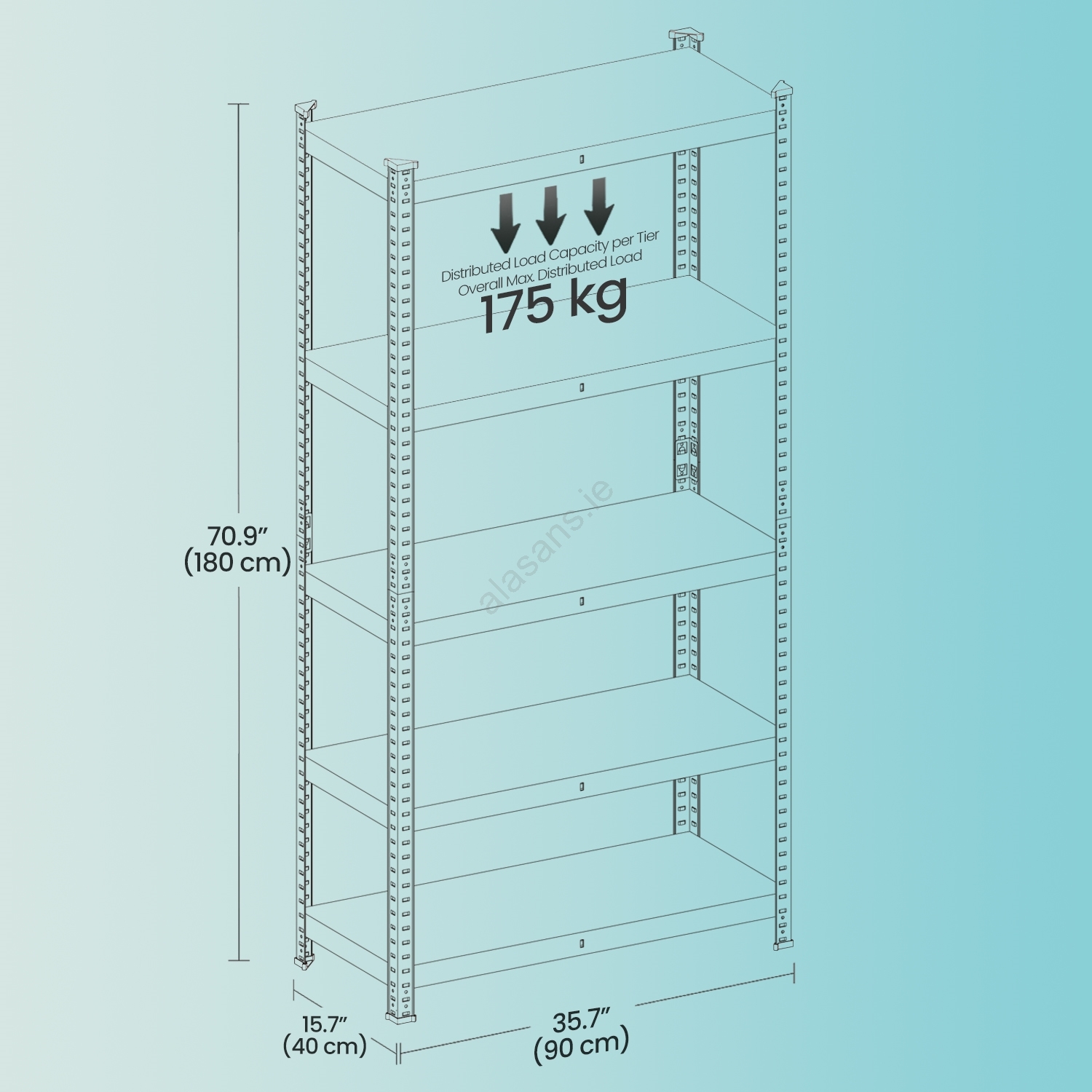 • Each shelf supports up to 175 kg and can safely accommodate paints, tools and fitness equipment.