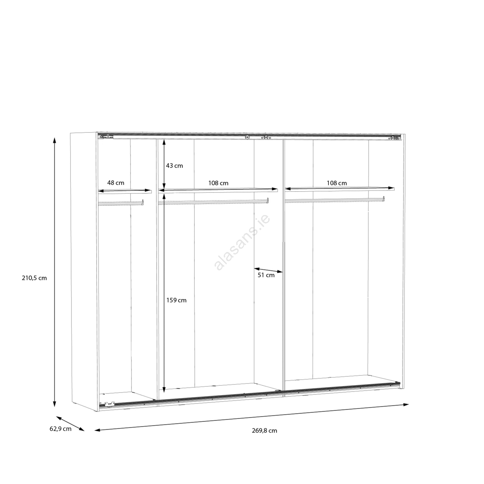 • The wardrobe features hanging rails, shelves and ample storage space for your clothes, bags and seasonal items.