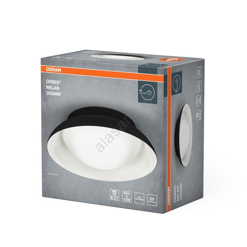 Osram - Ceiling light ORBIS MILAN 2xE27/10W/230V dia. 30,5 cm black characterizes nice and functional design.  A bulb with E27 cap is suitable for the light. Here, you can buy other bulbs at advantageous prices. You will have an interesting addtiion to your home.