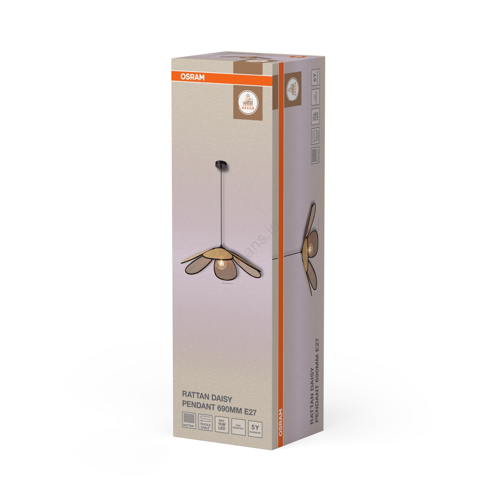Osram - DECOR RATTAN cord-hung pendant lamp, 1xE27/15W/230V, Ø 69 cm, beige/black characterizes nice and functional design.  A bulb with E27 cap is suitable for the light. Here, you can buy other bulbs at advantageous prices. You will have an interesting addtiion to your home.