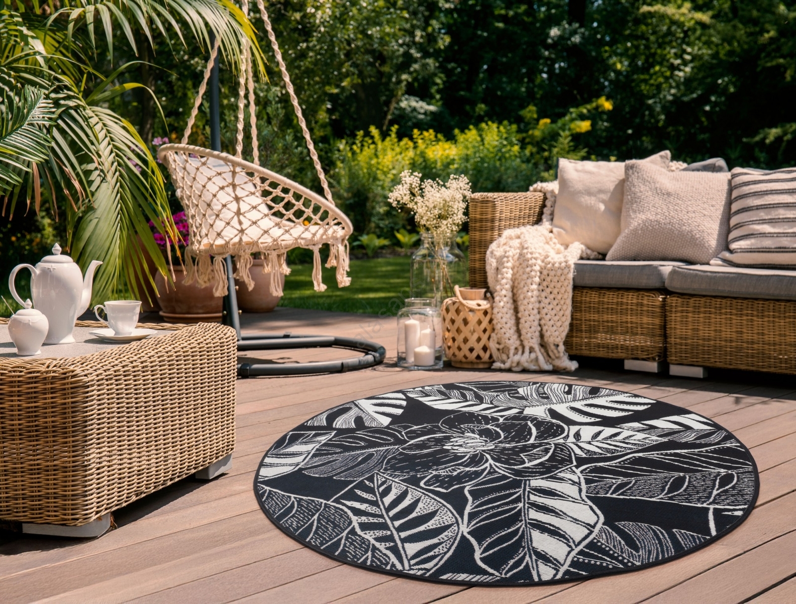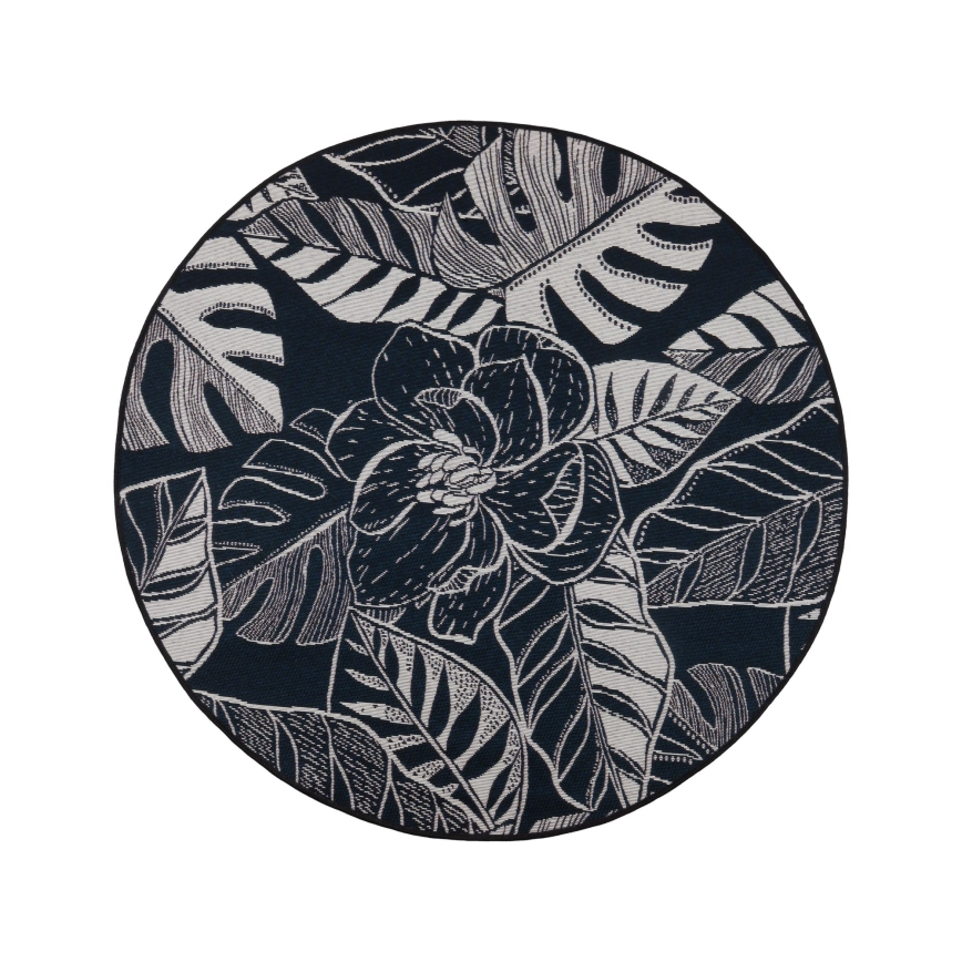 Outdoor rug JUNGLE 135 cm black/white/leaf pattern