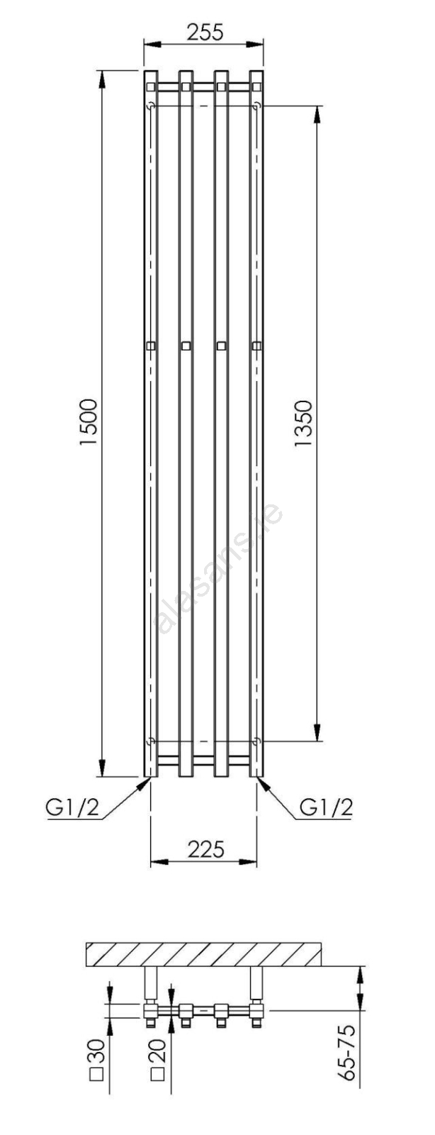 • The radiator features square hooks arranged in two rows for effortless towel hanging.