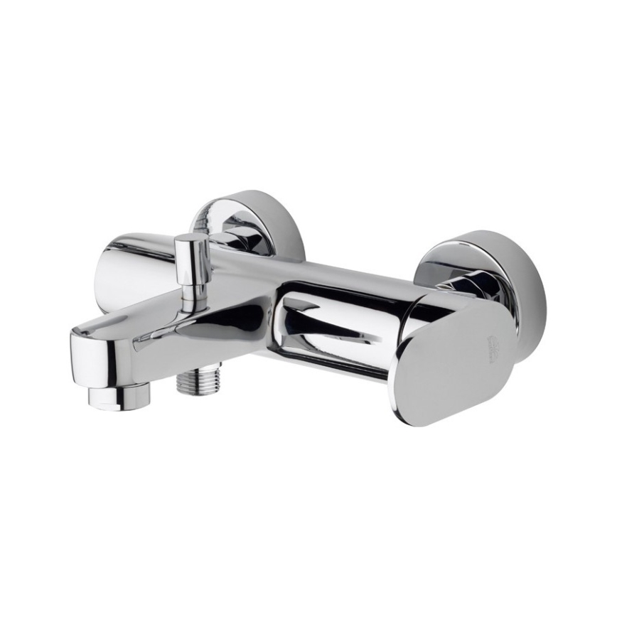 • Wall-mounted single-lever bath mixer featuring an elegant, timeless design.