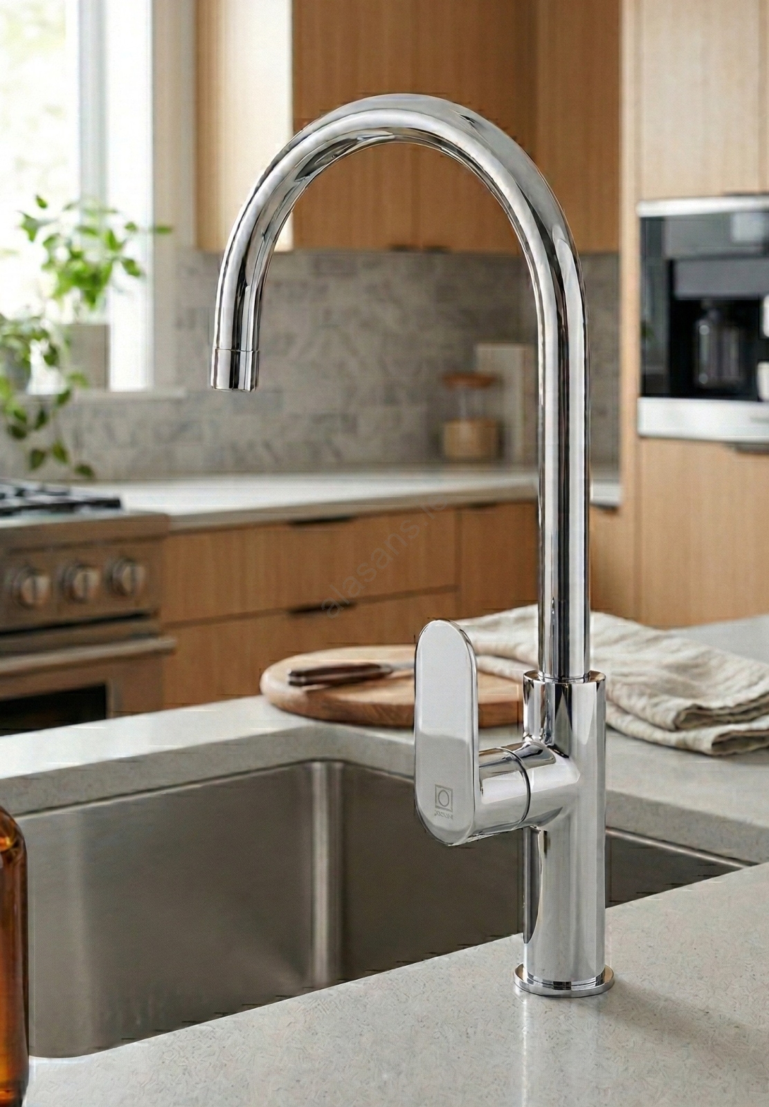 • Deck-mounted single-lever kitchen faucet for sink.