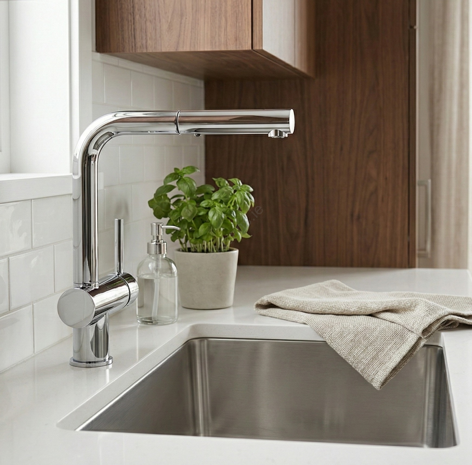 Paffoni - Kitchen faucet with pull-out sprayer LIGHT 29,2 cm polished chrome
