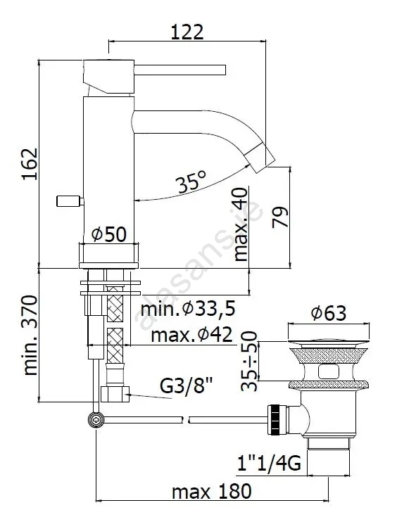 • Deck-mounted basin mixer with integrated pop-up waste.