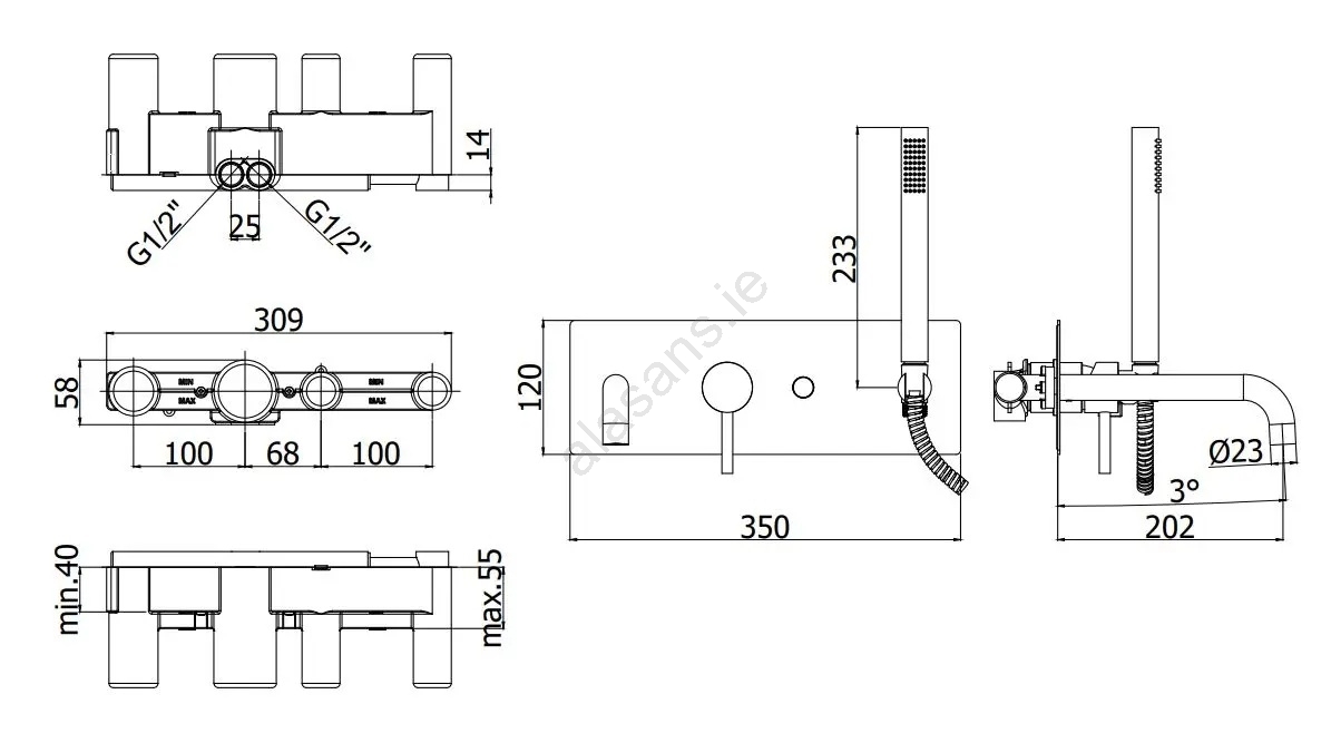 • Built-in shower and bath mixer Paffoni LIGHT in matte black.