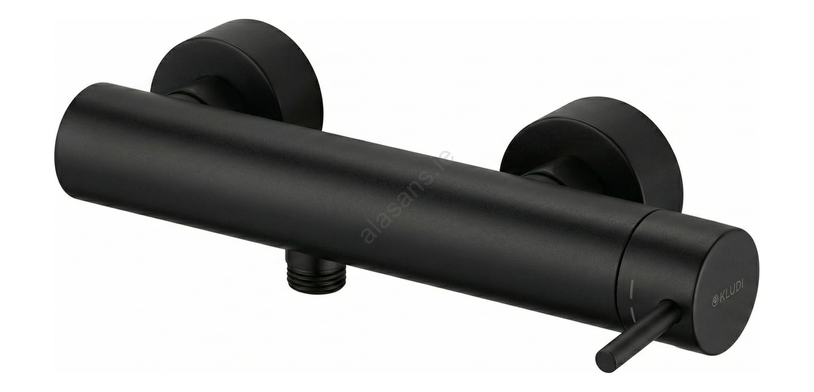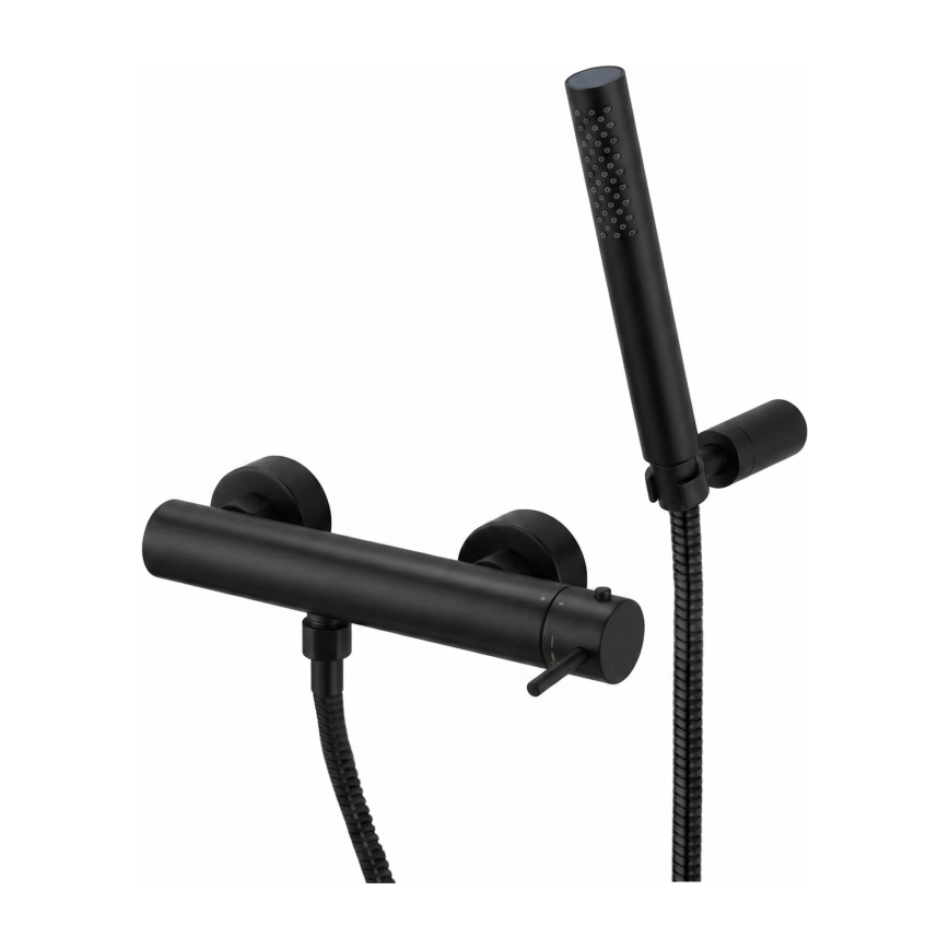 • Wall-mounted single-lever shower mixer with a complete accessory set.