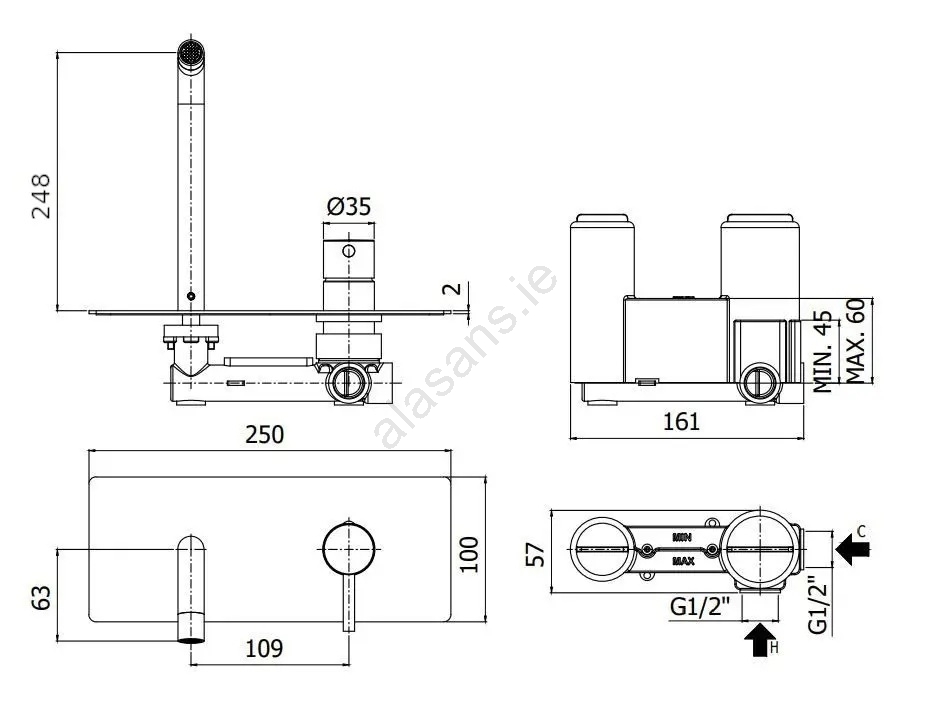 • Designed for concealed installation; the mixer includes the in-wall mounting body.