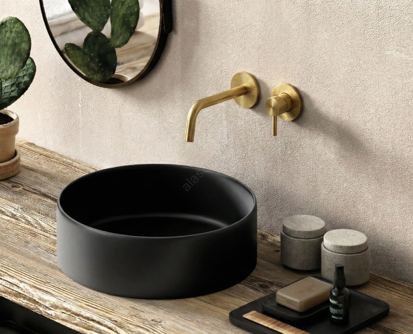 • Concealed basin mixer in a brushed gold finish.