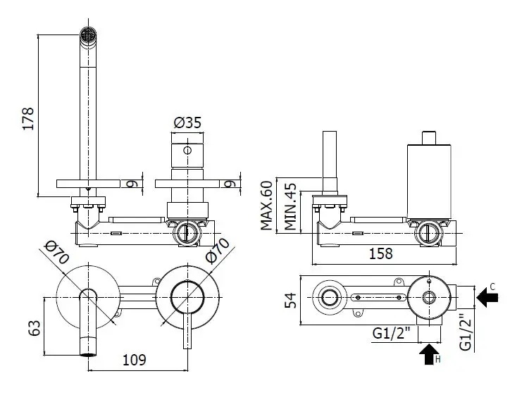 • Supplied including the concealed installation body.