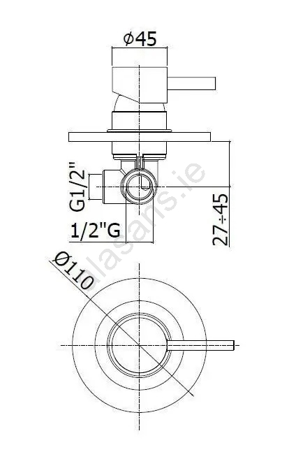 • Single-lever concealed mixer with a 2-way diverter for the shower and an additional outlet.