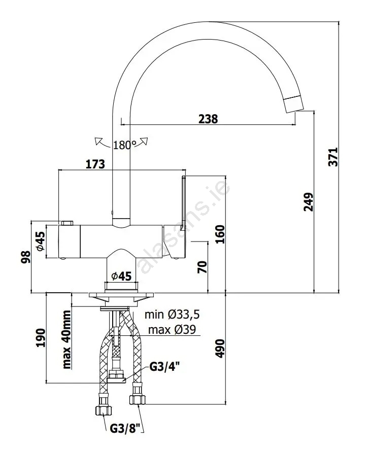 • Easy installation: includes 2× stainless steel connection hoses, length 40 cm.