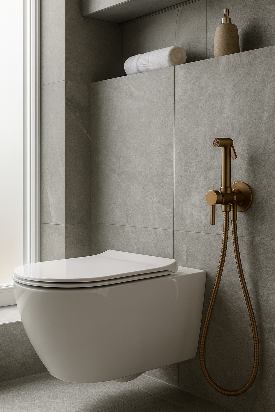 • Concealed single-lever mixer set with a hand-held bidet sprayer.