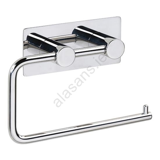 • Modern stainless-steel toilet paper holder with a glossy chrome finish.