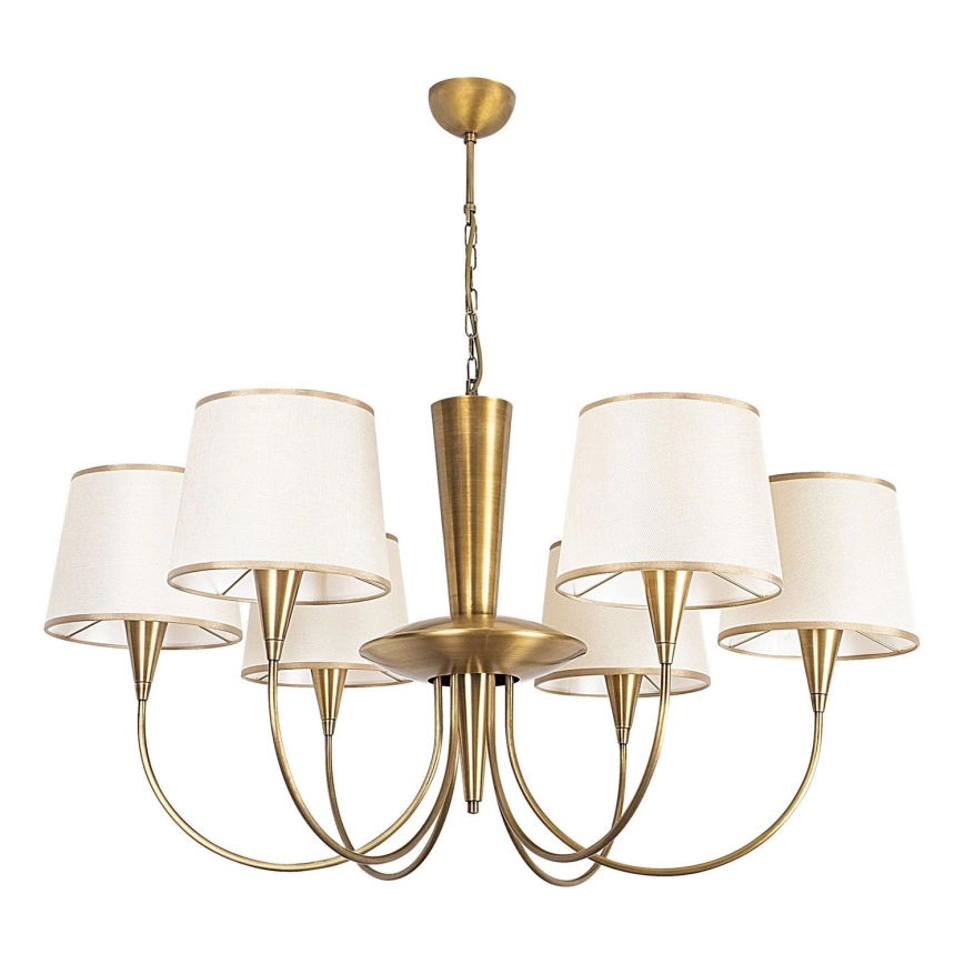 PARDO chain-hung chandelier 6xE27/40W/230V gold/cream characterizes nice and functional design.  A bulb with E27 cap is suitable for the light. Here, you can buy other bulbs at advantageous prices. You will have an interesting addtiion to your home.