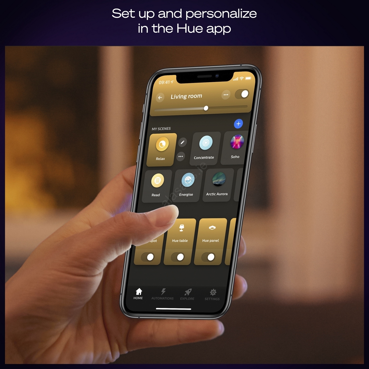 Create the perfect atmosphere with dimmable Philips Hue lights. Energy-efficient lighting you can control remotely to create ideal light conditions tailored to your preferences, activities or mood.