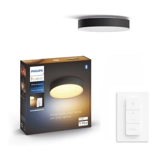 • Philips - Hue Dimmable LED Ceiling Light / 9.6 W / 230 V / 2200–6500 K / Ø 261 mm / Black + Remote Control