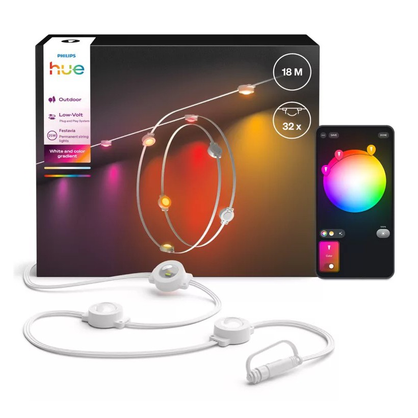• LED outdoor string Philips Hue with a length of 18 m.