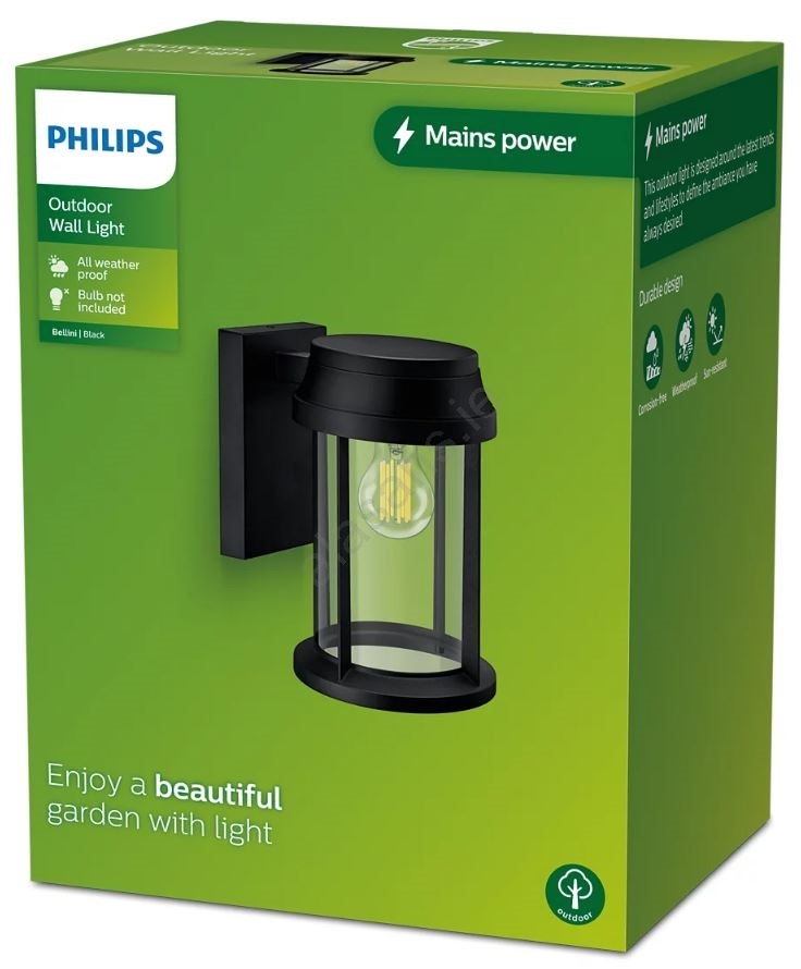 Philips - Outdoor wall light BELLINI 1xE27/25W/230V IP44 characterizes nice and functional design.  A bulb with E27 cap is suitable for the light. Here, you can buy other bulbs at advantageous prices. You will have an interesting addtiion to your home.