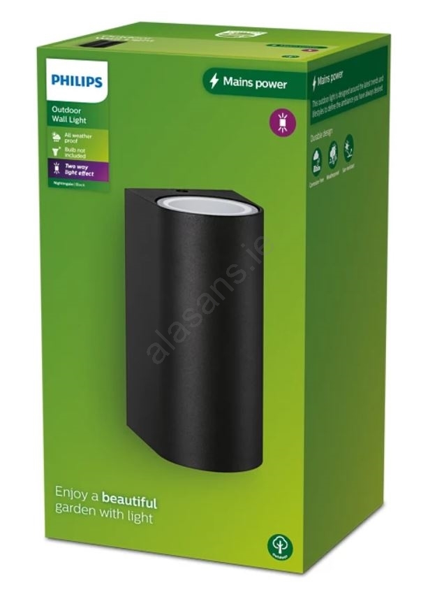 Philips - Outdoor wall light NIGHTINGALE 2xGU10/35W/230V IP44 characterizes nice and functional design.  A bulb with GU10 cap is suitable for the light. Here, you can buy other bulbs at advantageous prices. You will have an interesting addtiion to your home.