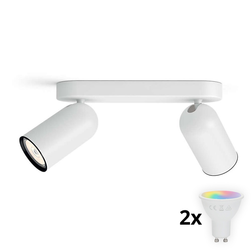 • Philips - PONGEE LED RGBW Dimmable Spotlight, 2x GU10 / 4.8W / 230V / 3000K, White + Remote Control