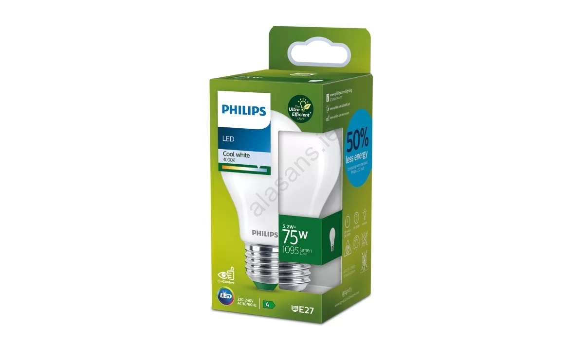 • Philips ULTRAEFFICIENT A60 LED Bulb E27 5.2W 230V 4000K
