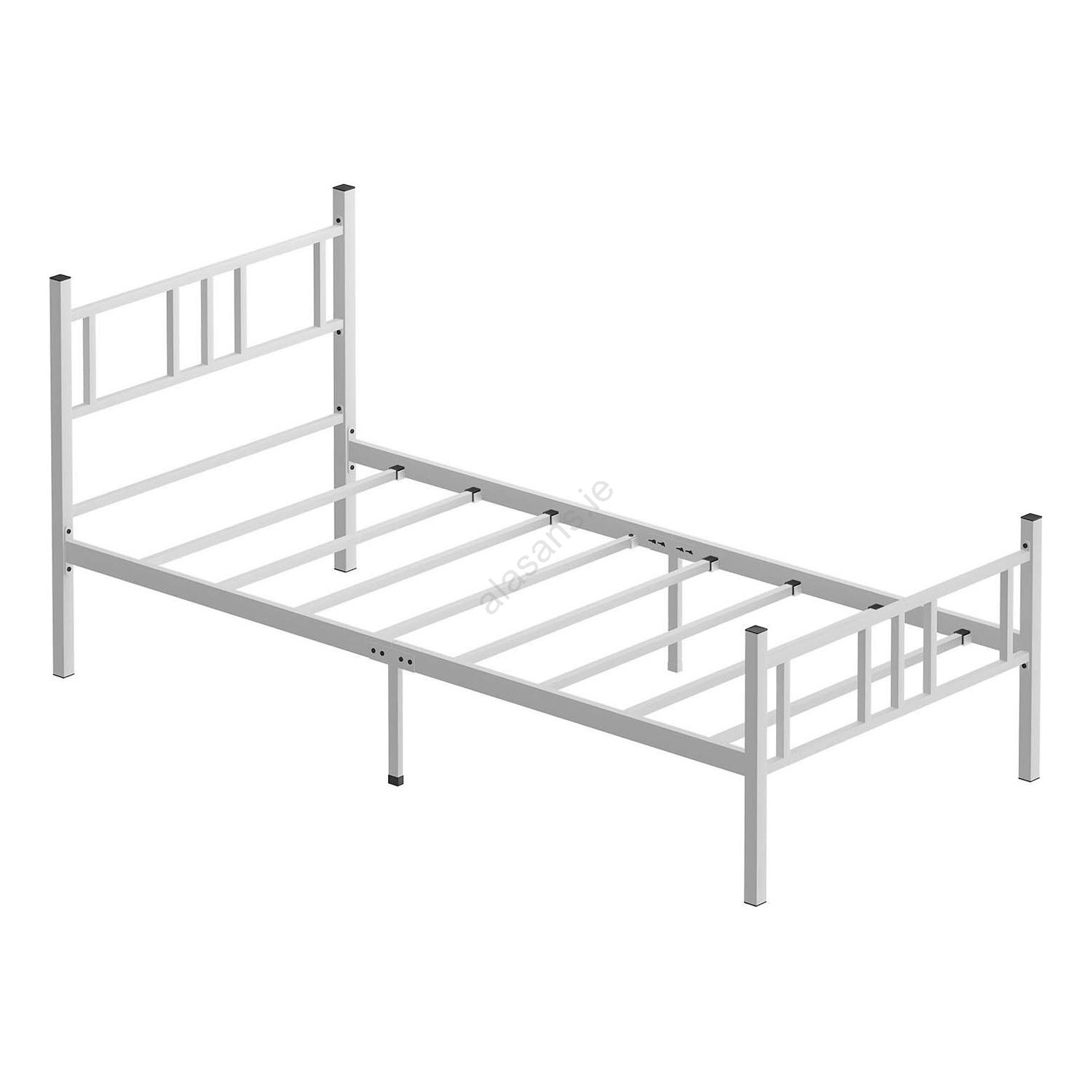 PIRON Metal Single Bed 90 x 200 cm, White — 120 kg Load Capacity