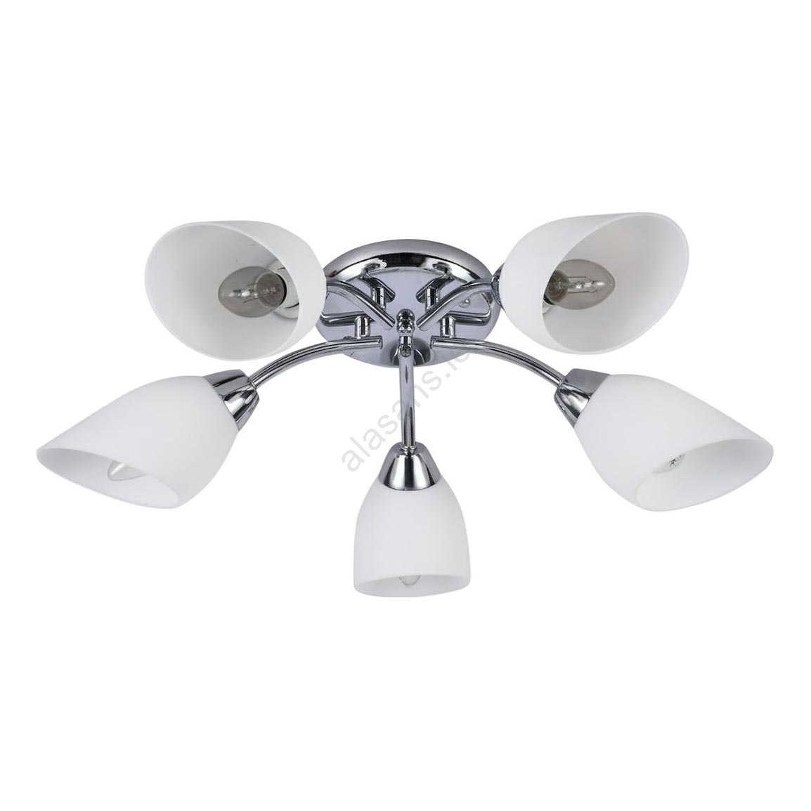 PORTOS Flush-Mount Chandelier, 5×E14/10W/230V, Polished Chrome characterizes nice and functional design.  A bulb with E14 cap is suitable for the light. Here, you can buy other bulbs at advantageous prices. You will have an interesting addtiion to your home.