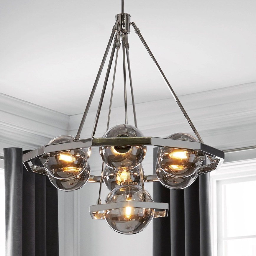 Quintiesse - HARPER Rod Chandelier 7xE14/60W/230V, Ø 81.3 cm, Polished Chrome / Smoked Glass characterizes nice and functional design.  A bulb with E14 cap is suitable for the light. Here, you can buy other bulbs at advantageous prices. You will have an interesting addtiion to your home.