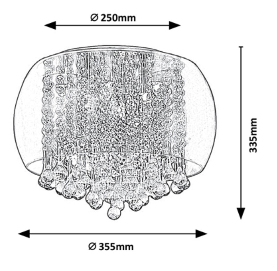 The Ninelle ceiling light, embodying a modern style, is recommended for those who prefer a glossy and elegant fixture in their living room or bedroom. This metal light in a chrome finish is complemented by a tinted glass lampshade, partially adorned with brilliant crystal glass decorations. The Ninelle fixture resembles a special jewel hanging from the ceiling. This magnificent model accommodates six bulbs, each with a maximum power of 40 W. The socket type is G9. Depending on your preference and the desired ambiance, you can choose warm or natural white light sources. The dimensions of the Ninelle ceiling light are as follows: diameter 400 mm, distance from ceiling 325 mm, mounting diameter 250 mm. This model is supplied without light bulbs.