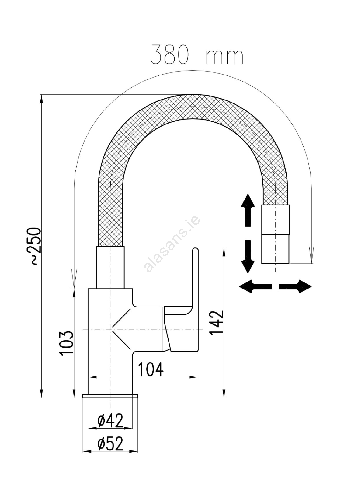• The practical swivel spout simplifies washing dishes and rinsing the entire sink or basin.