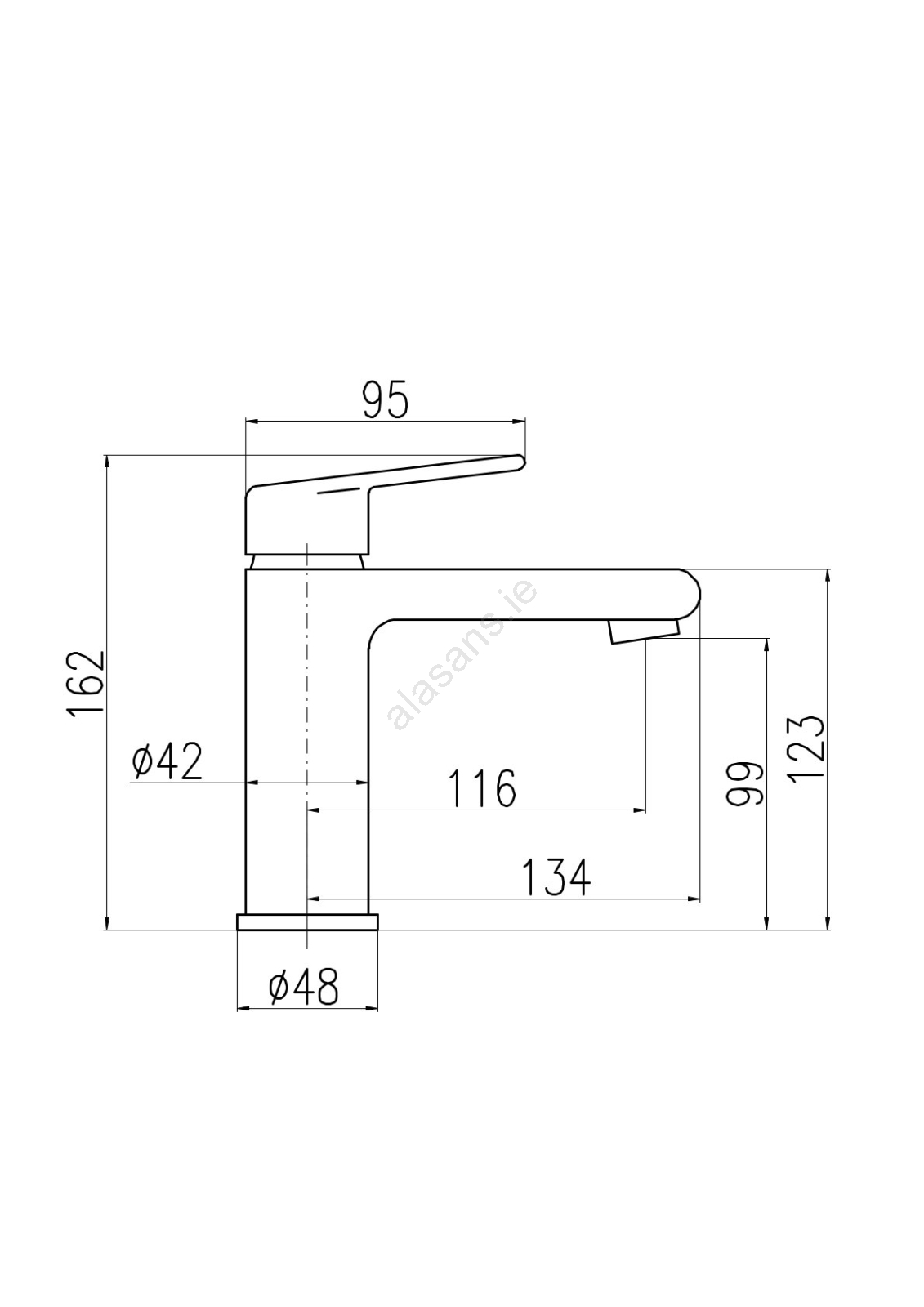 • Deck-mounted basin mixer without pop-up waste.