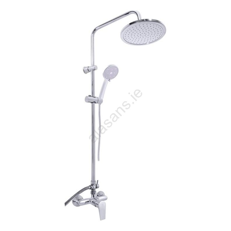 • Complete shower set with mixer tap, including an overhead shower and a hand shower.