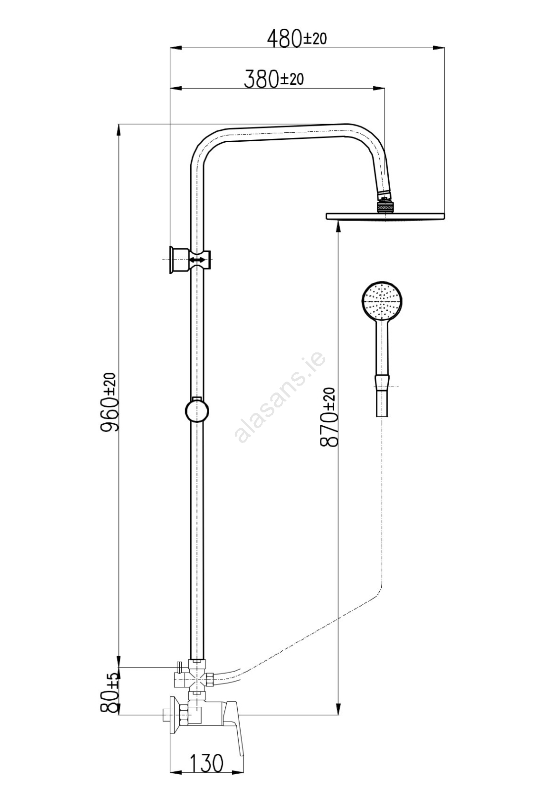 • Set includes: shower mixer, anti-limescale single-function hand shower, anti-limescale overhead shower (diameter 23 cm), metal double-lock shower hose (length 150 cm), shower rail with a single wall bracket.