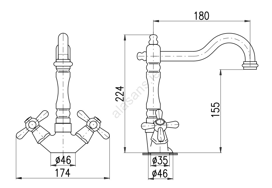 • Deck-mounted basin mixer with swivel spout and CLICK-CLACK 5/4" drain.