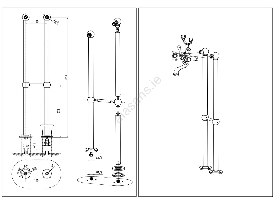 • Included: metal hand shower (dia. 76 mm), plastic shower hose (length 150 cm), bath mixer.